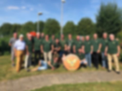 Am 4.Oktober 1977 wurde im Gesellschaftszimmer der Gasstätte „Bei Rita“ auf der Bergheimerstr.21 ein Schützenzug gegründet. Von den 13 Anwesenden waren acht sofort bereit, aktive Schützen zu werden, fünf Anwesende wollten zunächst das Schützenfest als Gastmarschierer erleben und sich dann entscheiden. Die Namensfindung fiel sehr schwer. Viele Vorschläge fanden keine Mehrheit oder es stellte sich heraus, dass die Namen bereits von anderen Zügen benutzt wurden. Bei den Volksstämmen unserer Heimat, bei den „Germanen“ war die Versammlung sich dann einig. Nach einem Vorgespräch mit dem Adjutanten der St. Hubertus-Schützen-Gesellschaft Neuss 1899 e.V. wurde beschlossen, sich diesem Korps anzuschließen und - gleichsam als „Schnupperkurs“ - zunächst einmal den Patronatstag mitzufeiern. Das Schützenfest 1978 sah 13 Germanen mit viel Herzklopfen und Lampenfieber auf dem Markt. Inzwischen „volljährig“ ist zwar routinemäßige Ruhe eingezogen, doch vor der Parade ist immer noch ein gesundes Maß an Spannung vorhanden. Im ersten Jahr marschierten die Germanen in geliehenen Uniformen, führten aber bereits ein eigenes Horn mit. Dieses Horn ist eine Eigenproduktion. Den Rohling, ein Büffelhorn, erhielt der Zug aus der Neusser Partnerstadt Chalons sur Marne vom damaligen Leiter des Deutsch- Französischen Kulturkreises. Chalons unterhält, dies soll zur Erklärung der Herkunft eingeflochten werden, außer mit Neuss auch noch eine Städtepartnerschaft mit einer Gemeinde in Afrika, aus der das Horn zur Verfügung gestellt wurde. In der Werkstatt eines Zugmitgliedes wurde das Büffelhorn bearbeitet und mit Messingblech belegt. In diese Messingumrandung wurden die Namen der acht Zuggründer eingebracht. Im zweiten Jahr des Bestehens schlossen sich sechs Schützen eines anderen Hubertuszuges den Germanen an. Die somit konsolidierte Mannschaftsstärke veranlasste die Mitglieder zu größeren Investitionen: Eigene Gewehre (Stiftung eines Zugmitgliedes), Uniformes, Degen und Hirschfänger wurden angeschafft bzw. als Geschenke zu Geburtstagen oder zum Weihnachtsfest gerne gesehen. 15 Jahre - von 1980 bis 1994 - trugen die Germanen mit anderen Hubertuszügen oder auch alleine anlässlich der Fronleichnamsprozession den Himmel. Inzwischen hat man diese ehrenvolle Aufgabe anderen Zügen übertragen. Wie bei vielen Neusser Zügen, so nimmt auch bei den Germanen der Vatertag eine besondere Stellung ein. Fußmärsche nach Kaarst oder Hoisten, Traktorfahrten nach Zons, aber auch gemeinsame Fahrten mit den Zugdamen gehören zum Programm der Germanen. Es ist Tradition, dass der Zug in der Vorweihnachtszeit eine Weihnacht- bzw. Nikolausfeier für die Kleinen oder einen Sauentag (Spanferkelessen) organisiert. Geburtstage, so will es die Zugtradition, werden immer dann groß gefeiert, wenn ein Mitglied fünfzig Jahre alt wird. Nach einem besonderen Zeremoniell erfolgt die Aufnahme in den Verein der alten Säcke. Der Schießsport hat bei den Germanen einen hohen Stellenwert. Österliches Eierschießen, zum Jahreswechsel Brezelschießen (auch für die Zugfrauen) und monatliche Übungsschießen fließen in eine Wertung ein, bei der der Jahresbeste ermittelt wird. Vierzehn Jahre lang ermittelten die Germanen am Mittwoch nach dem Schützenfest unter tätiger Hilfe des Schießmeisters Willi Schleppers auf dem Schießstand in Gnadental den Zugförster. Es ist selbstverständlich, dass die Germanen bei den Gesellschaftsschießen des Korps immer präsent sind. Mittlerweile haben die Germanen drei Hubertuskönige gestellt, Andreas Lehmann 2002/2003, Markus Lehmann 2011/2012, Herbert Kremer 2015/2016. Weitere Hubertuskönige haben sich dem Zug angeschlossen.